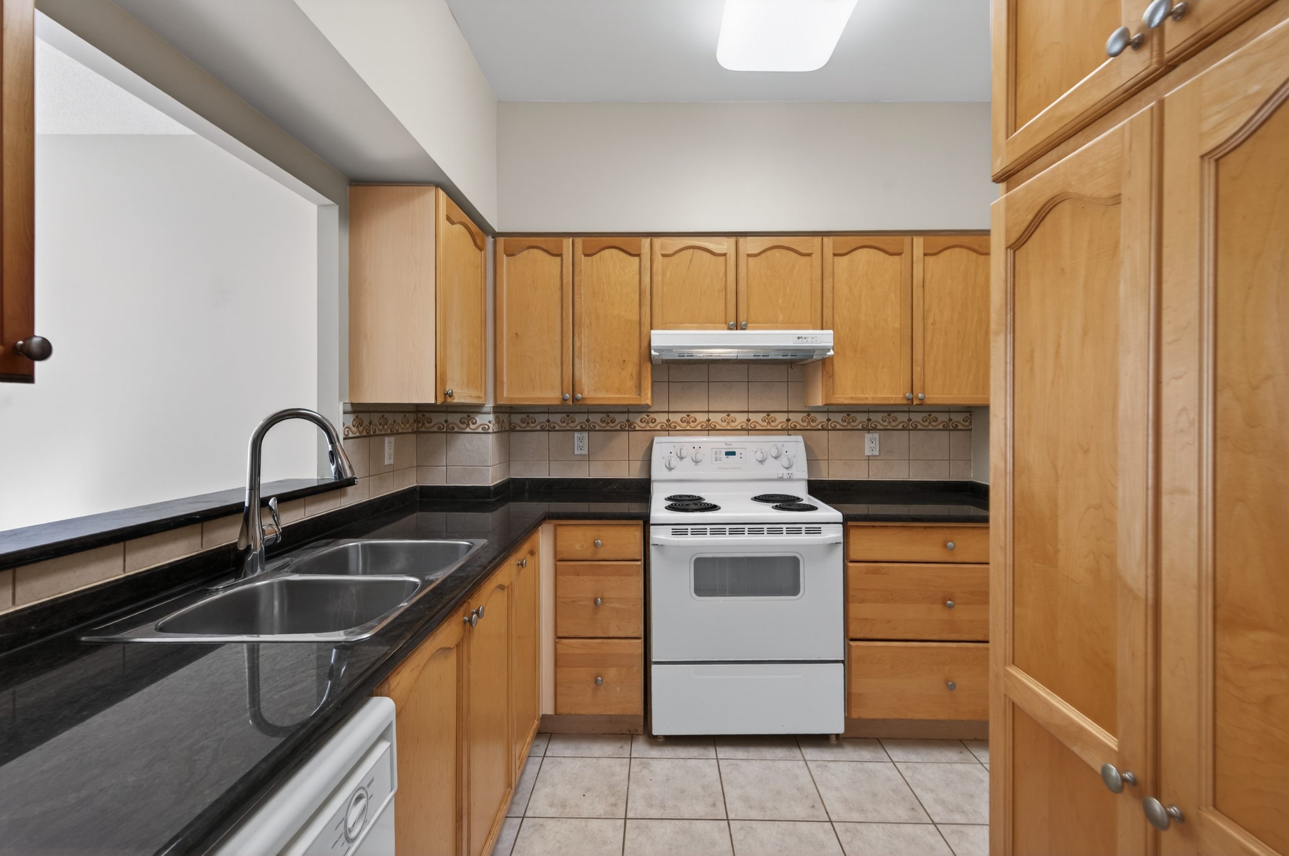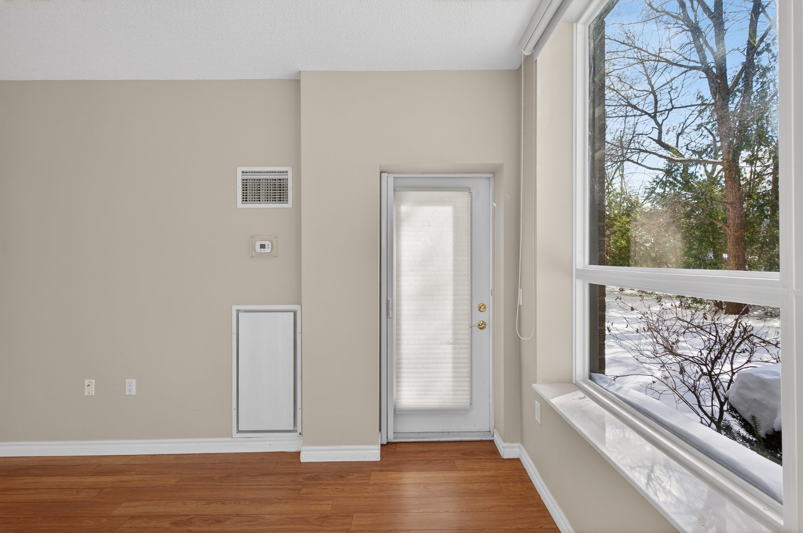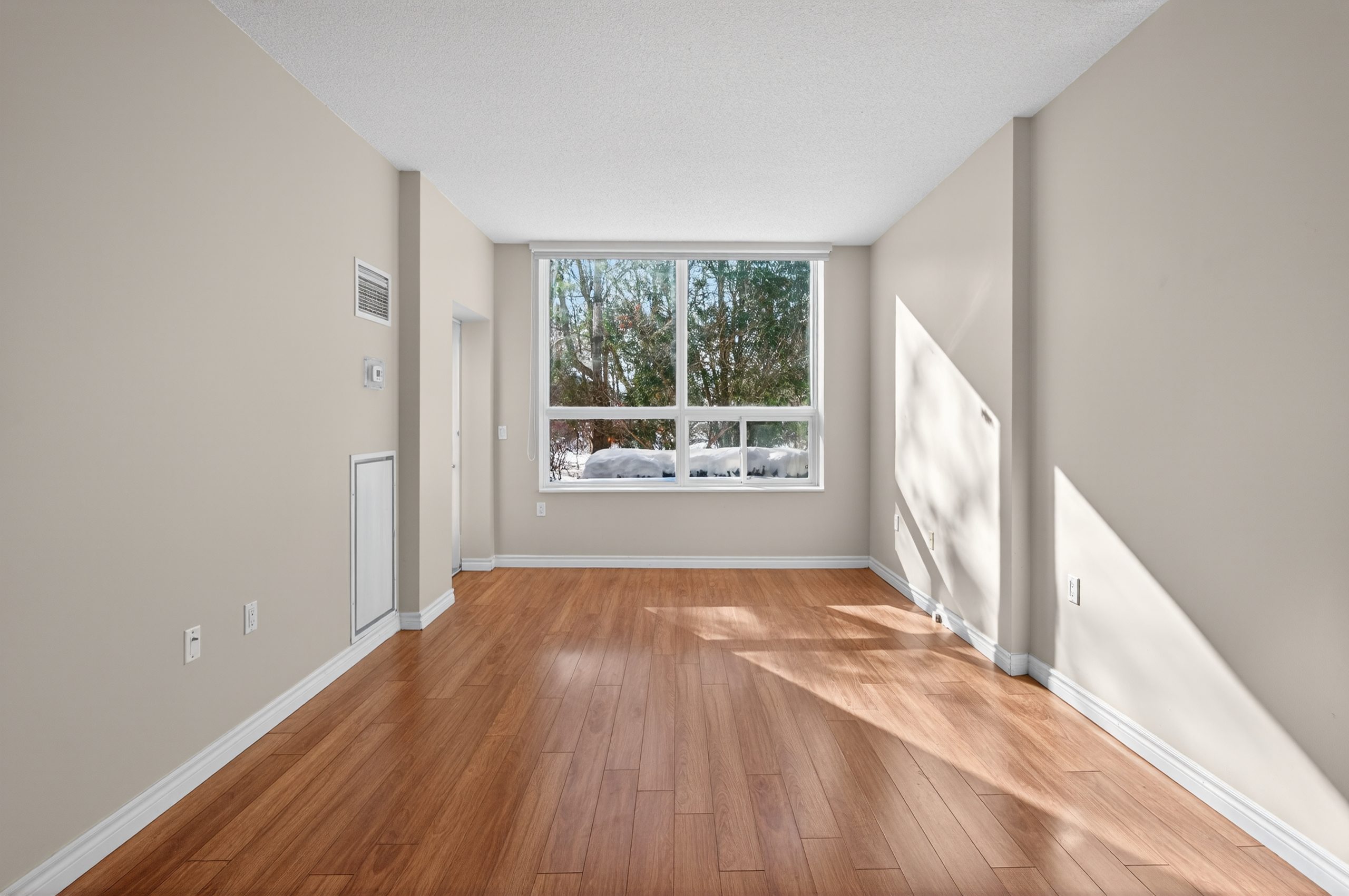 Welcome to this bright ground-floor 1-bedroom plus den condo at Hearthstone by the Lake, located at 100 Burloak Drive in Burlington near the border of Oakville. This well-appointed suite features 9’ ceilings, laminate flooring and ceramic tile throughout, and a convenient walk-out to a private patio. The spacious primary bedroom offers a large closet, while the den provides flexible space for an office or sitting area. The kitchen includes a pass-through to the dining area, and the 3-piece bathroom is equipped with a walk-in shower, safety grab bars, under-counter storage, and an emergency call button. In-suite laundry includes a full-size stacking washer and dryer.