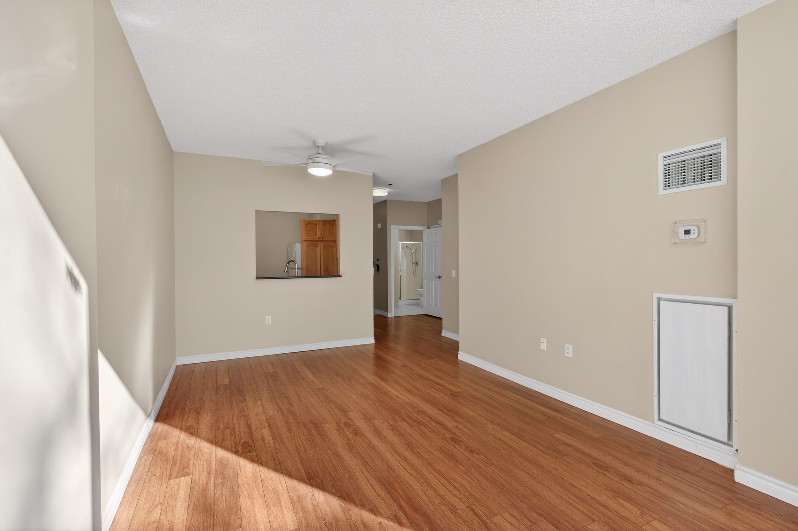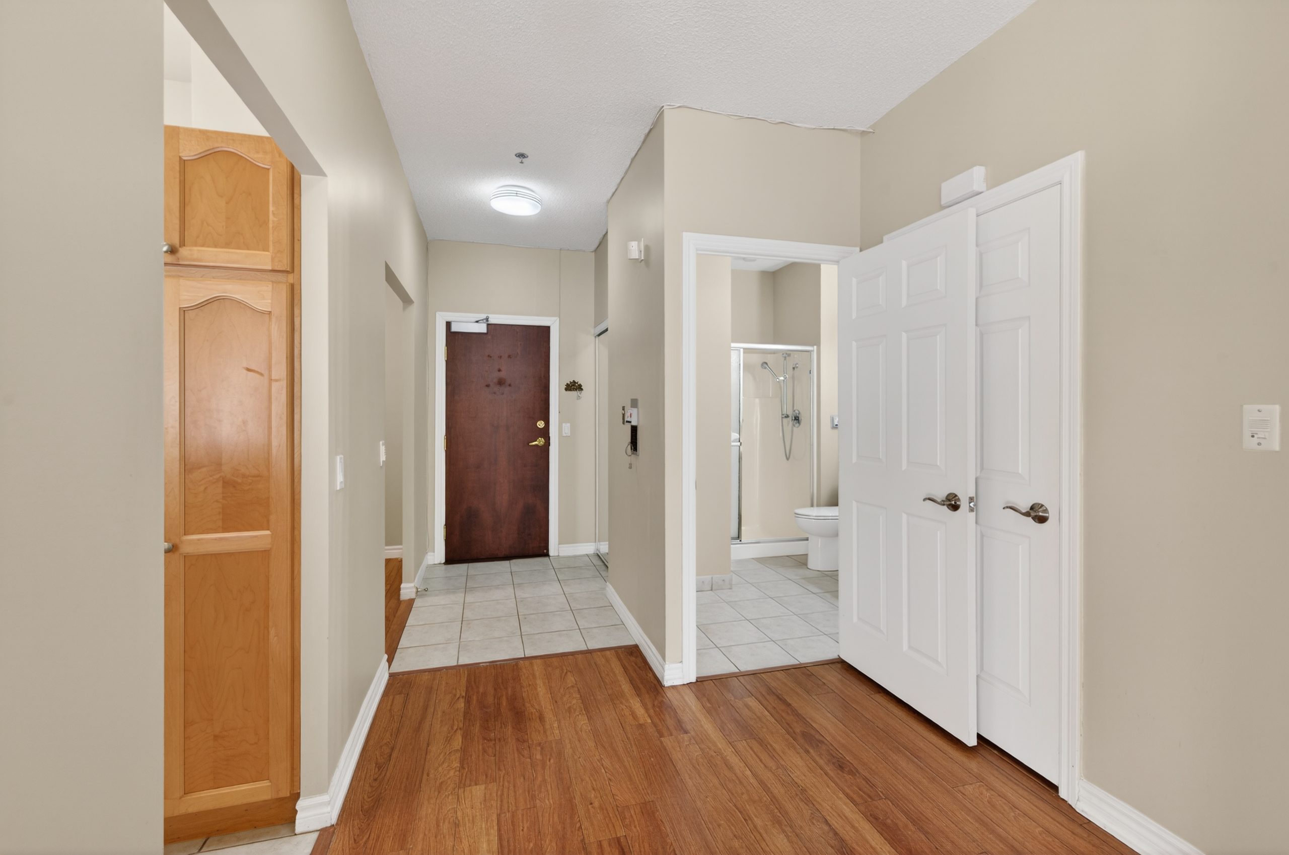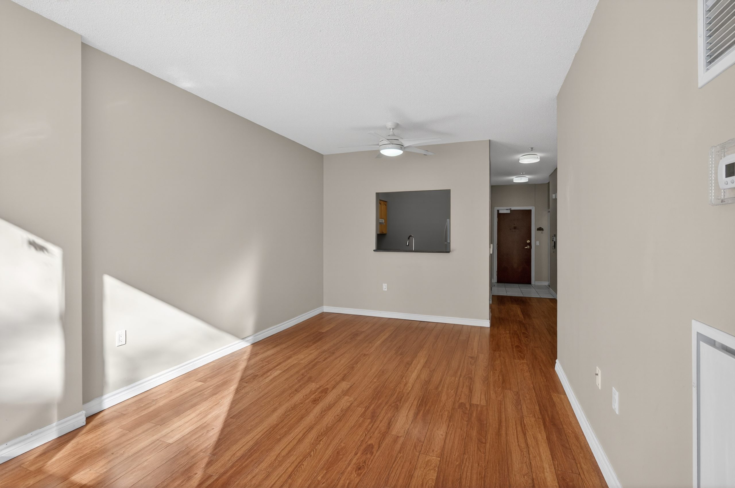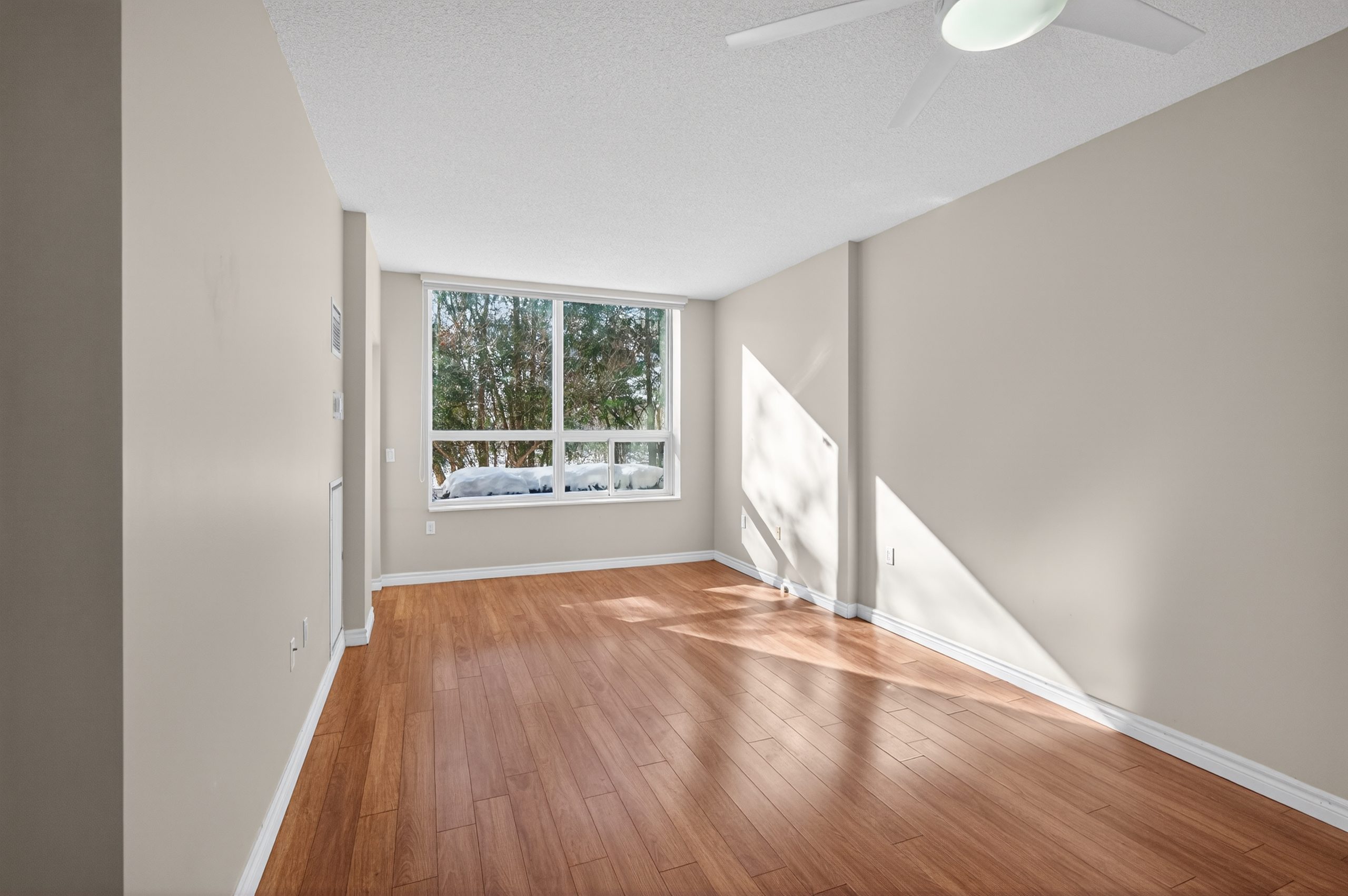 Welcome to this bright ground-floor 1-bedroom plus den condo at Hearthstone by the Lake, located at 100 Burloak Drive in Burlington near the border of Oakville. This well-appointed suite features 9’ ceilings, laminate flooring and ceramic tile throughout, and a convenient walk-out to a private patio. The spacious primary bedroom offers a large closet, while the den provides flexible space for an office or sitting area. The kitchen includes a pass-through to the dining area, and the 3-piece bathroom is equipped with a walk-in shower, safety grab bars, under-counter storage, and an emergency call button. In-suite laundry includes a full-size stacking washer and dryer.