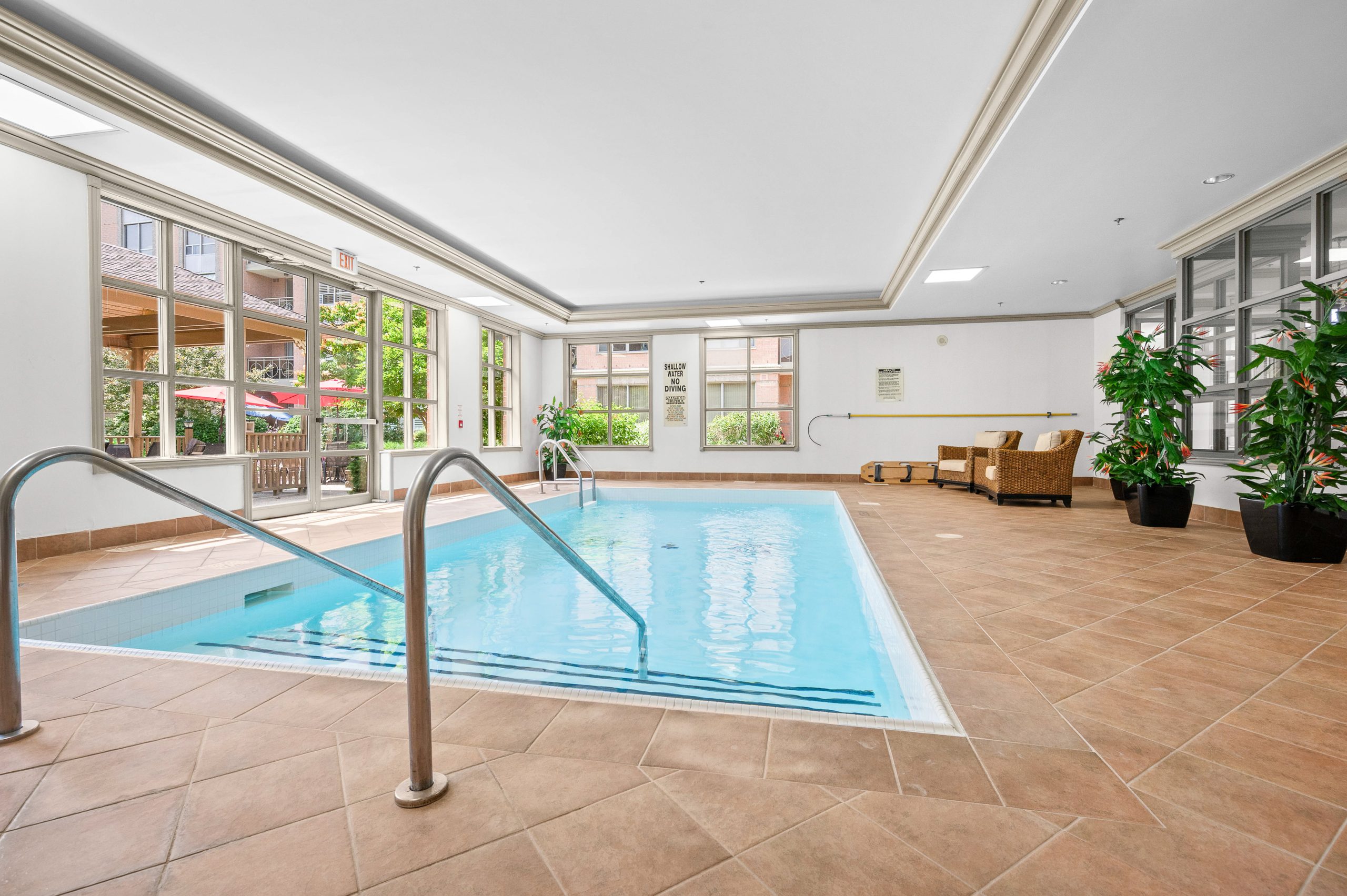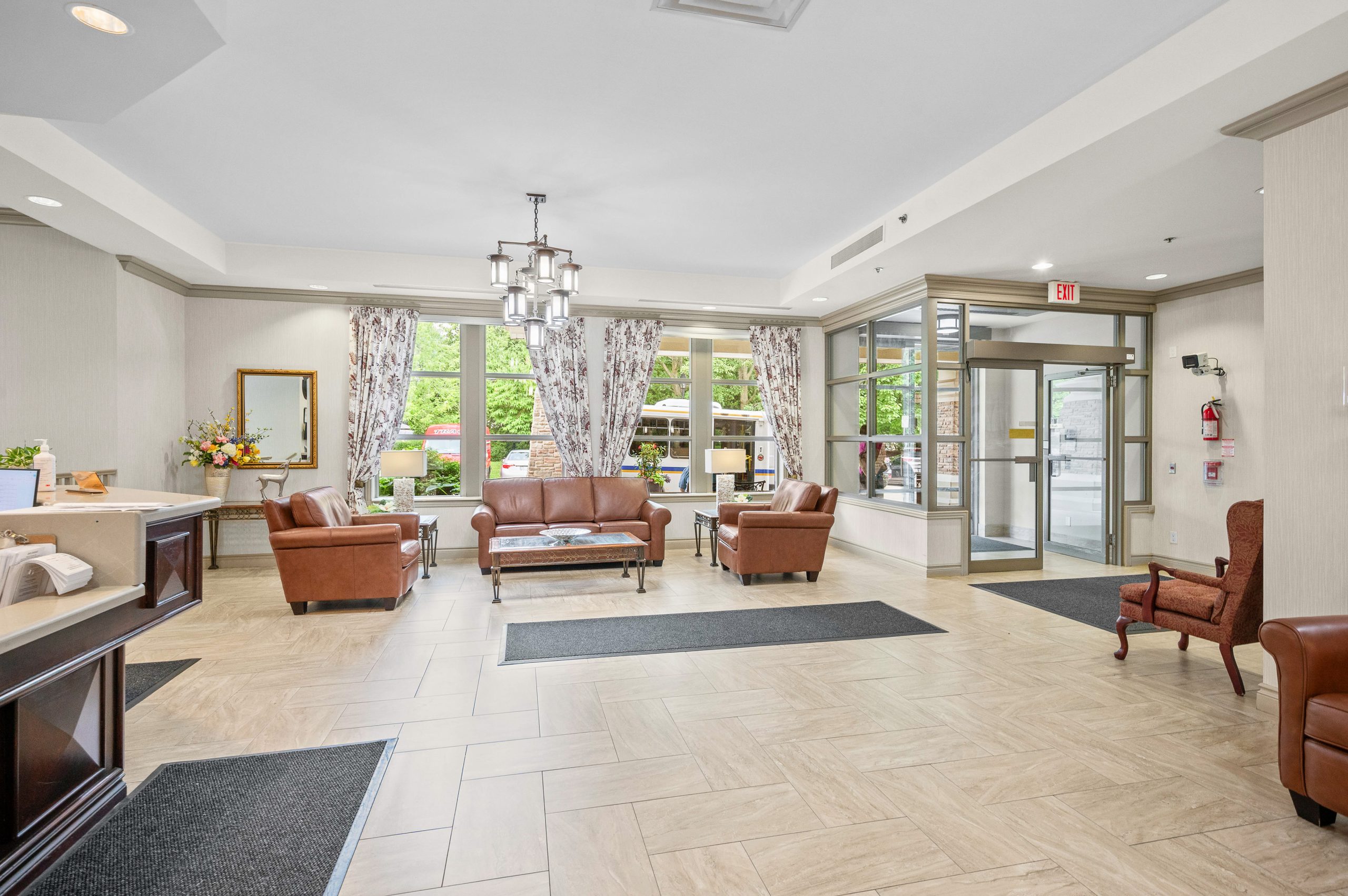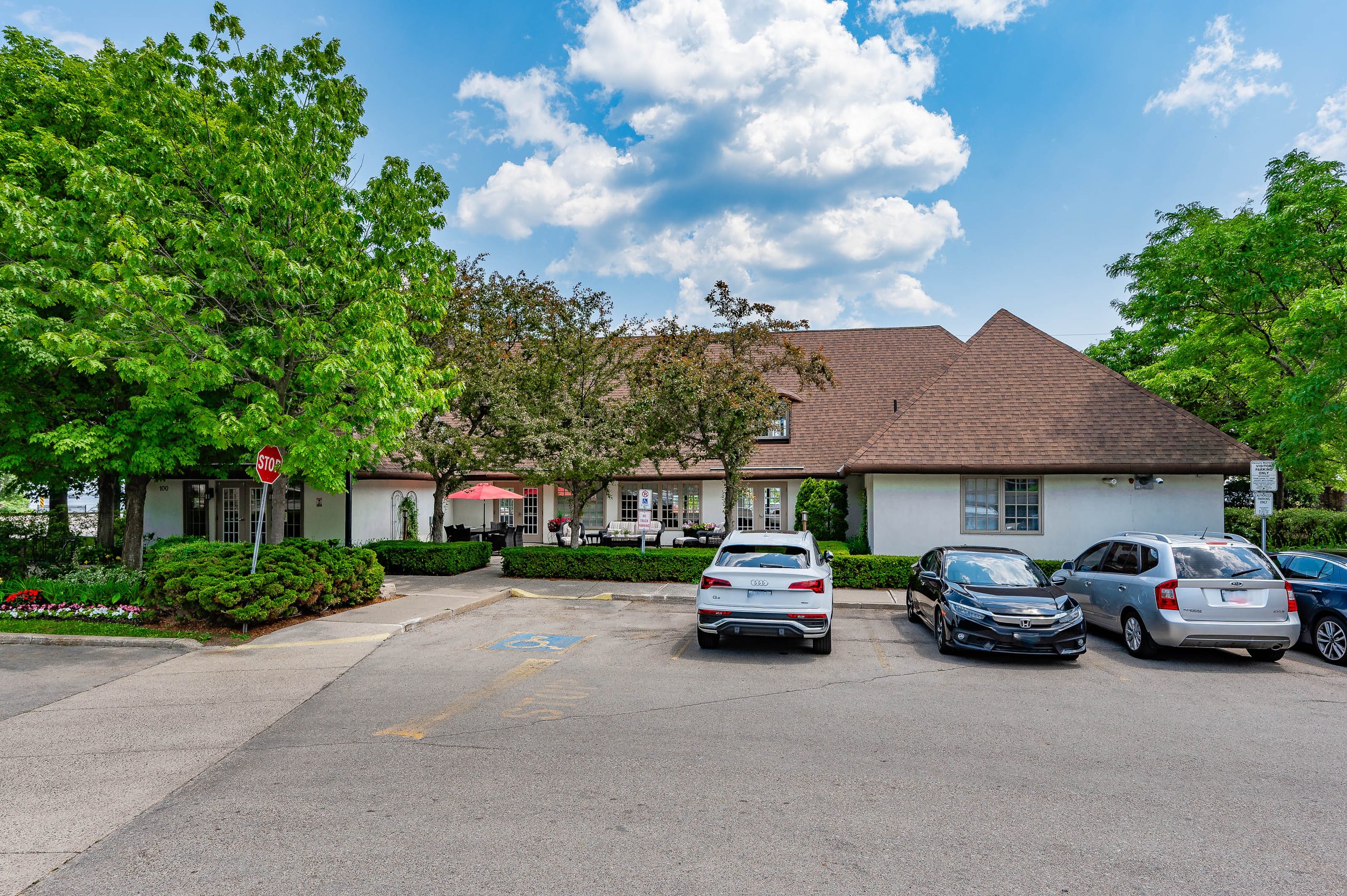 Clubhouse amenities include 24/7 emergency nursing, a wellness centre, emergency response system, housekeeping services, a dining room, lounge, library, fitness centre, indoor pool, hair salon, and transportation services. Surrounded by beautifully maintained grounds and gardens, the community is ideally situated near the shores of Lake Ontario with transit just steps away and convenient access to waterfront trails, parks, shopping, recreation centres, major highways, and GO Transit.